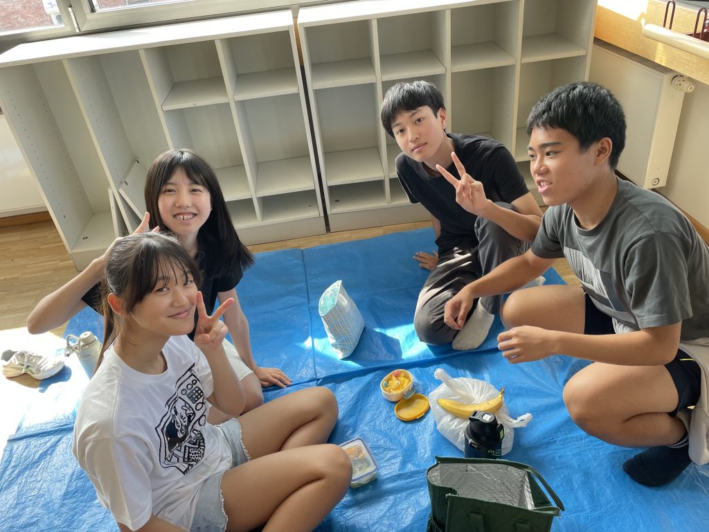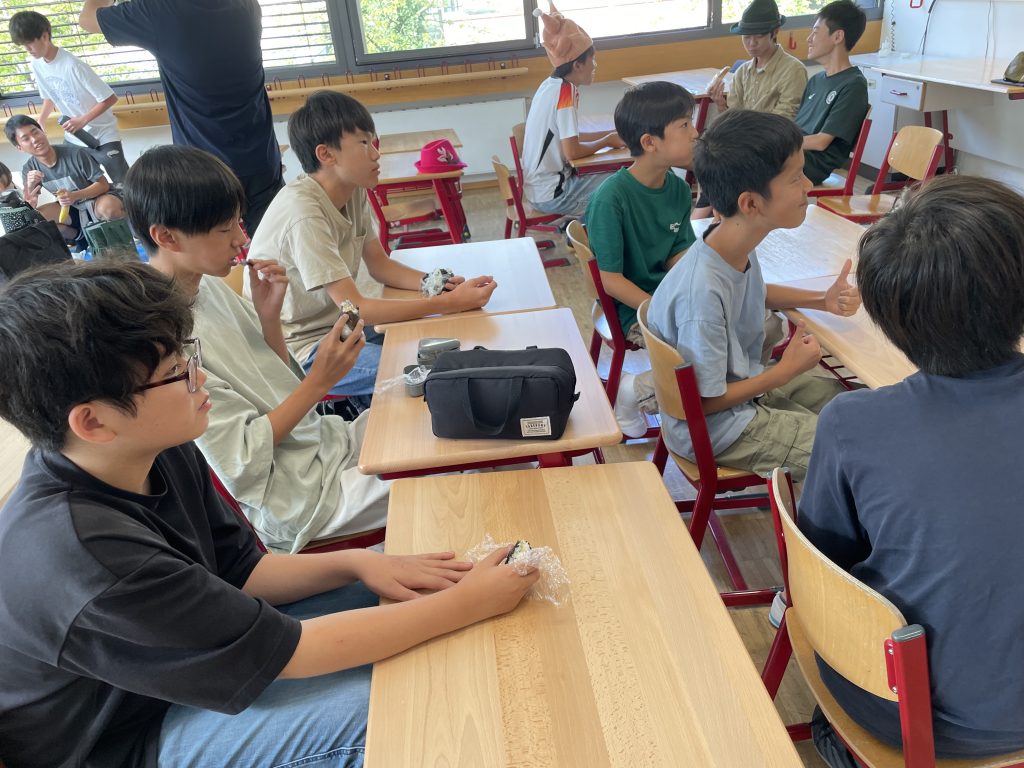 また、中学部だけでしたが、ドイツの学校のように家庭から軽食を持参して中休みにパウゼを実施しました。初めての取り組みで緊張感を感じながらも自分で作ってきたおにぎりを食べり、お父さんが作ってくれた焼きそばパンを大事そうに食べたりするなど、笑顔あふれる時間となりました。