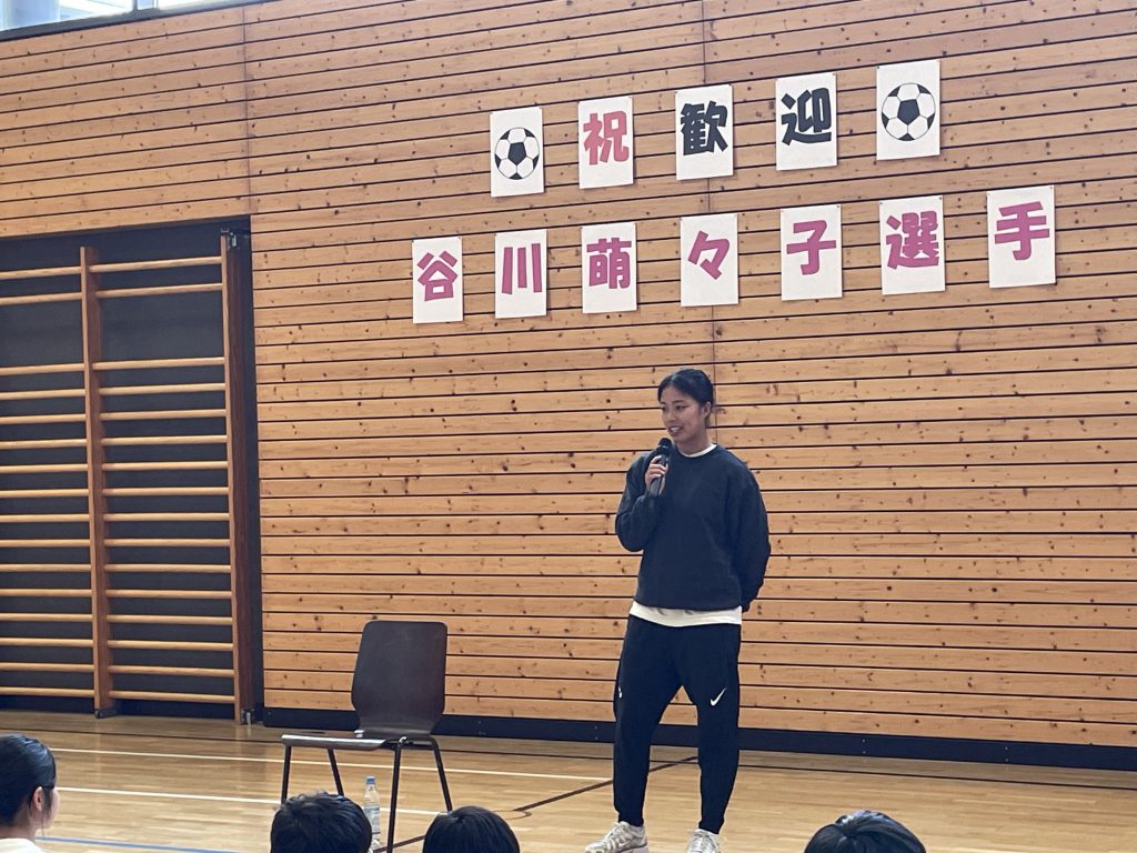 バイエルンミュンヘンの女子チームに所属している谷川萌々子選手がミュンヘン日本人国際学校にお越しいただきました。