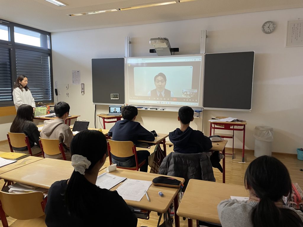 日本とオンラインでつないで6名の方からお話をお聞きしました。「講話を通して勤労の意義について考え、望ましい職業観を形成する」ことがねらいです。進路選択を間近に控えている子どもたちが、将来の自分の職業観の育成やキャリア形成のために、役立つことを願っています。講師を務めていただいた先生方は、とても熱心に子どもたちのためにお話いただきました。ウエディングプランナー・大学の先生・自動車会社・スポーツドクター・人材派遣会社・社会保険労務士と様々なお仕事の方のお話を聴くことができた大変貴重な機会となりました。