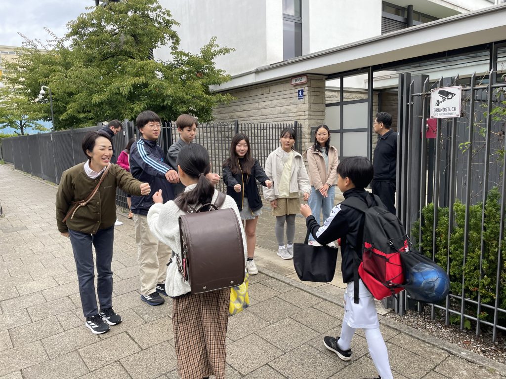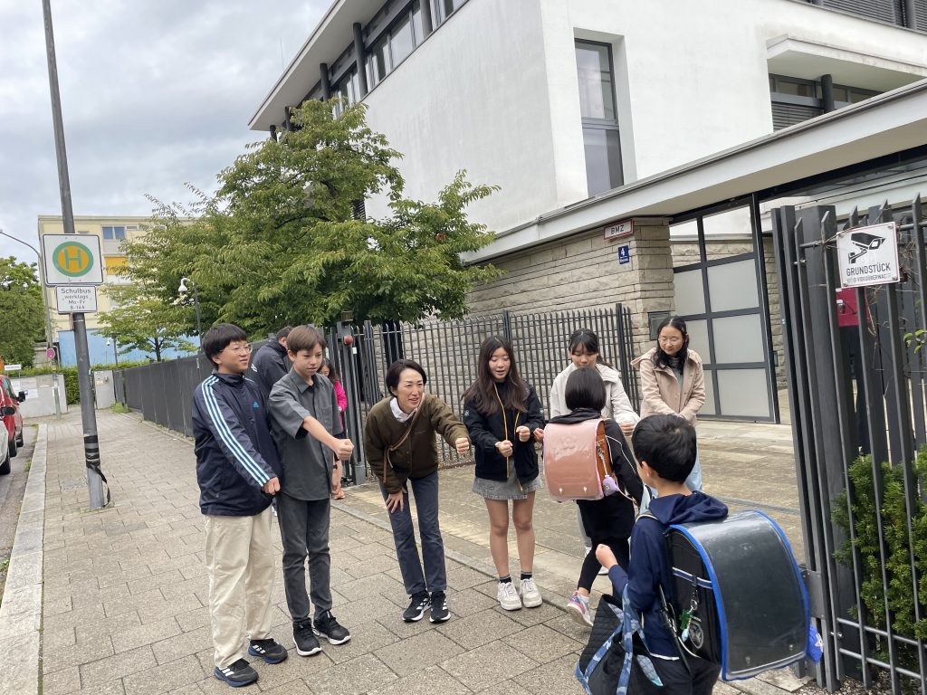 グータッチをしながら挨拶をするとお互いの距離がとても近づいたような気持ちになります。少し恥ずかしがる人もいましたが、多くの人が笑顔でグータッチに応じてくれていました。今週いっぱい行います。