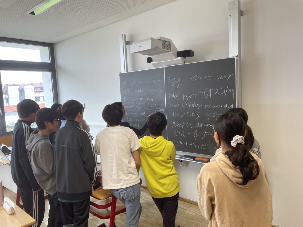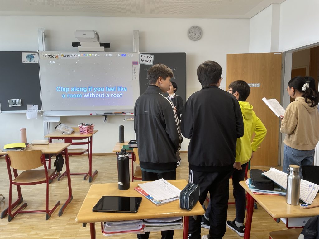 途中、アプリを使って自分の発表を録音して確かめました。どのグループもタブレットを使い画像も交えながら、堂々と英語でスピーチしました。中学部の先生方が放課後研究会を行いました。