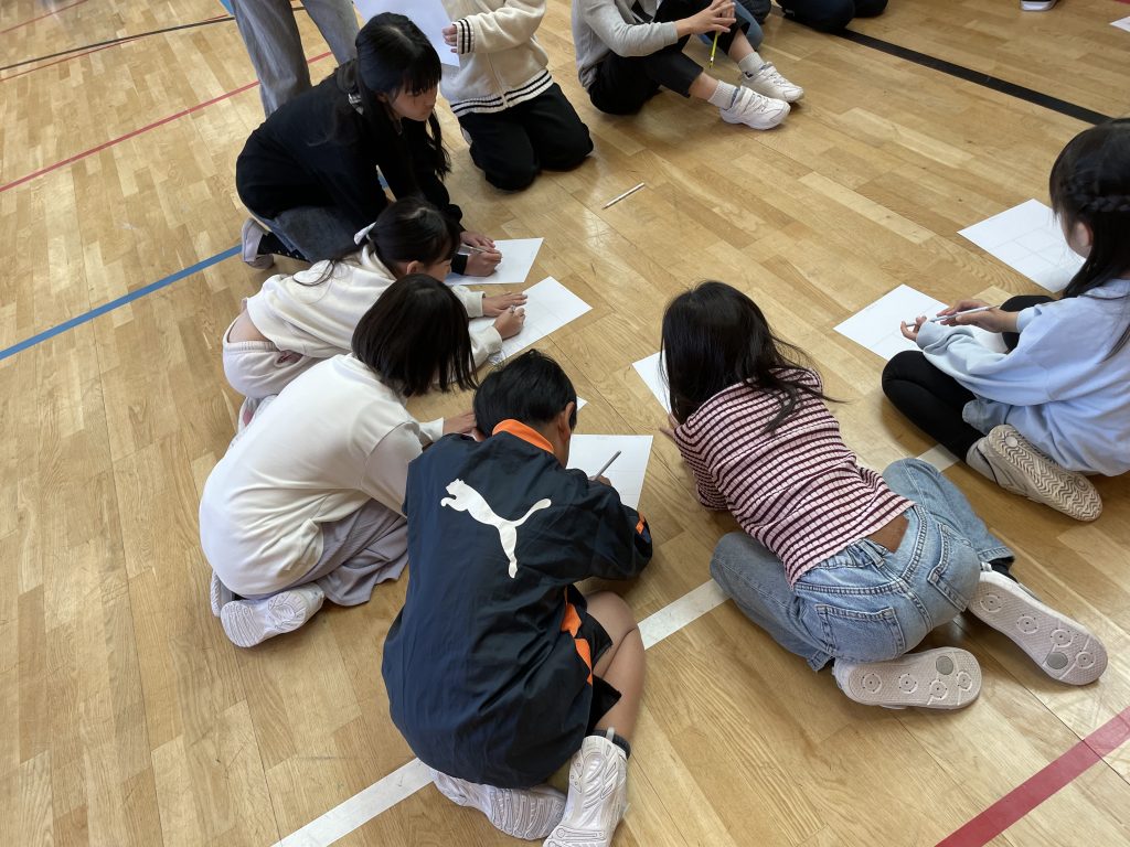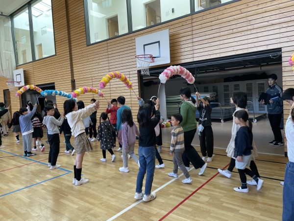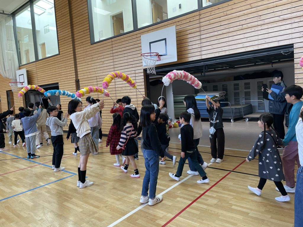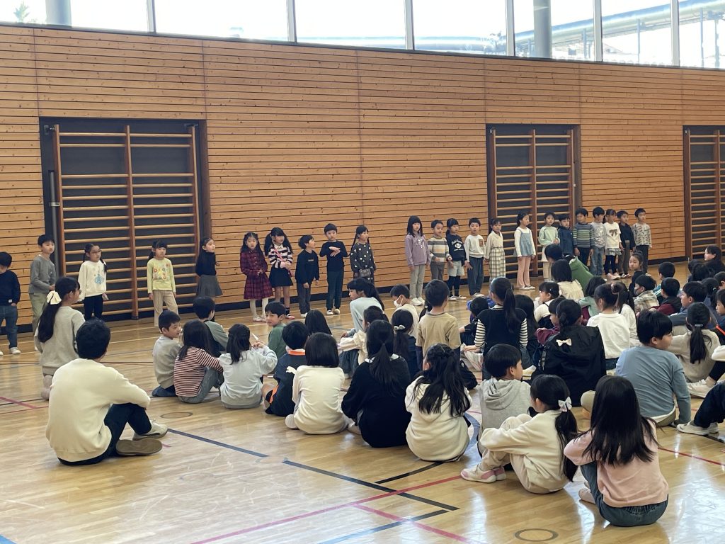 小学部は1年生から6年生が縦割りの班になって中休みなどに遊んだり、お昼を一緒に食べたりします。その初めての顔合わせもありました。自己紹介をして各縦割り班ごとにゲームをして楽しみました。