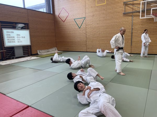 子どもたちは学習してきたことをもとに、疑問に思ったことをドイツ語で質問しました。「パトロールでどのくらい時間かかりますか?」の質問に「8時間から10時間くらい、特別な時は12時間」と聞いて驚いていました。「食事は何を食べてますか?」に質問に「たいてい食べる時は冷たくなっている」という話を聞いて、「大変な仕事だと思う」と感想を述べた児童もいました。子どもたちは、一生懸命にメモを取りながら聞いていました。