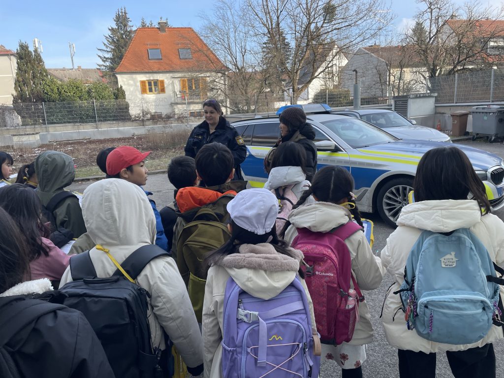 3年生が警察署の見学に行きました。案内してくださったのは本校の不審者対応訓練にも来てくださっている警察官の方でした。大きな街のミュンヘンは安全な街ですが、困ったことがれば子どもでも相談してほしいというお話がありました。