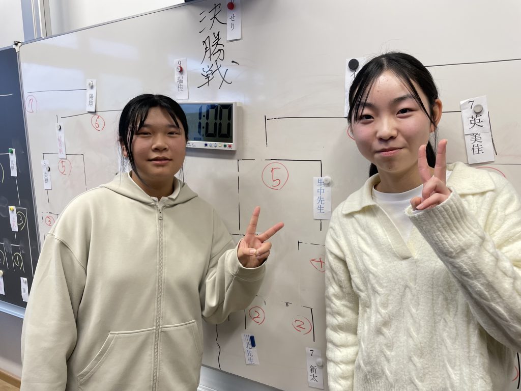国語の時間に古典の学習として学んできた百人一首の大会を、小学部6年生と中学部1,2,3年生が一緒に行いました。個人戦の勝ち抜きで勝者がトーナメントを勝ち上がっていきます。決勝に行くまで、熱戦が続きました。最後の決勝戦は、全員で見守り優勝者と準優勝者が決まりました。小学部6年生も中学生と一緒に行うことで、中学生の雰囲気を感じることができた貴重な機会になったようです。