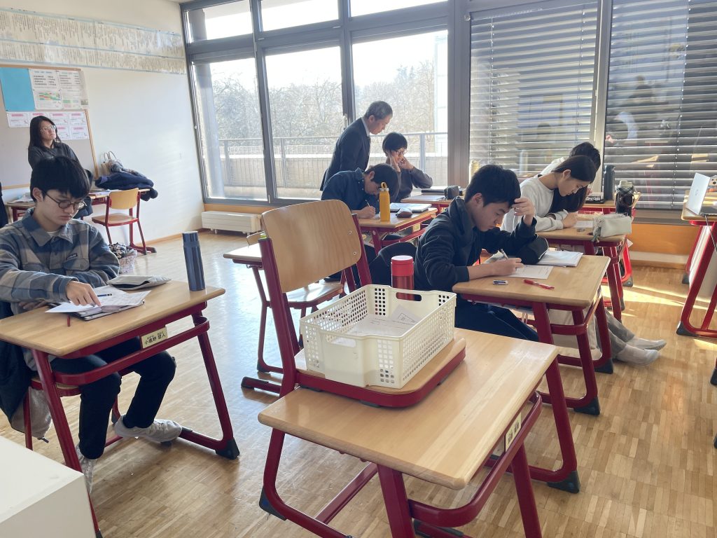小学部6年生は家庭科の授業で、事前に作っておいた手作り味噌を使って味噌汁を作っていました。中学部3年生は、受験のために帰国している友達もいますが、数学の問題を一生懸命に解いていました。