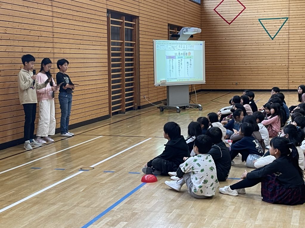 11月の小学部集会では、11月の月目標の説明と図書委員会から読書月間の連絡がありました。校長からは、男女の平等について話をしました。 はじめに日本では、104代の総理大臣として初めて女性が選ばれたという話をしました。それまでは日本ではすべて男性が総理大臣を務めてきました。