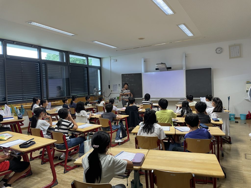 「ミュンヘン日本人国際学校では、バイエルン州の認可を受けている学校なので現地校と同じように自転車教室をしなくてはいけません。この自転車教室の目的は、自転車を上手に乗ることではなく皆さんが安全に自転車を乗れるようになることです。」指導者の峠先生が、自転車教室を行う理由について話されました。今週学科の学習をして、来週は校外に出て現地の警察の方に指導をしていただき、自転車を使って実技を行います。